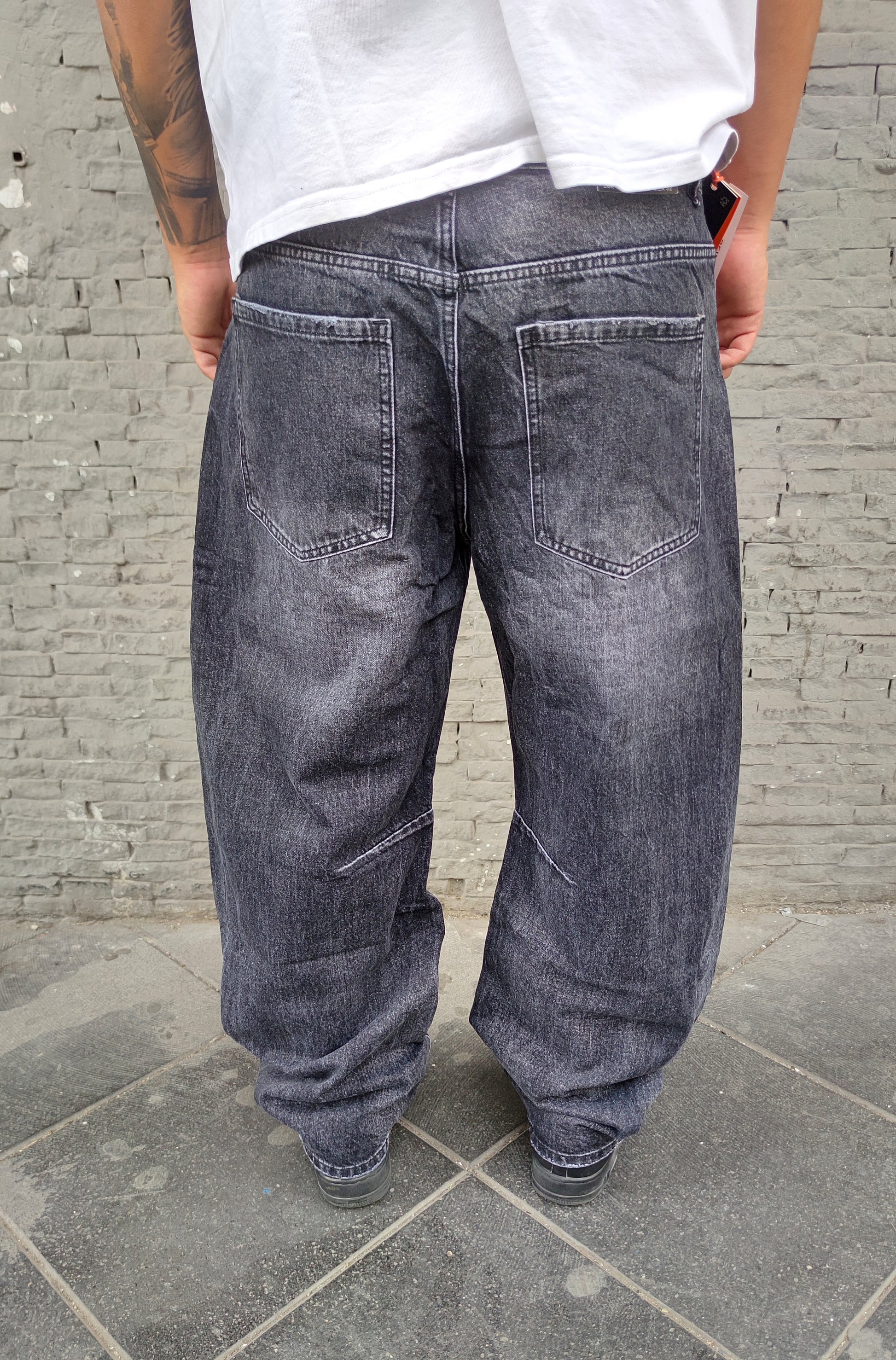 Jeans grigio effetto stone washed, baggy fit e carattere urban.