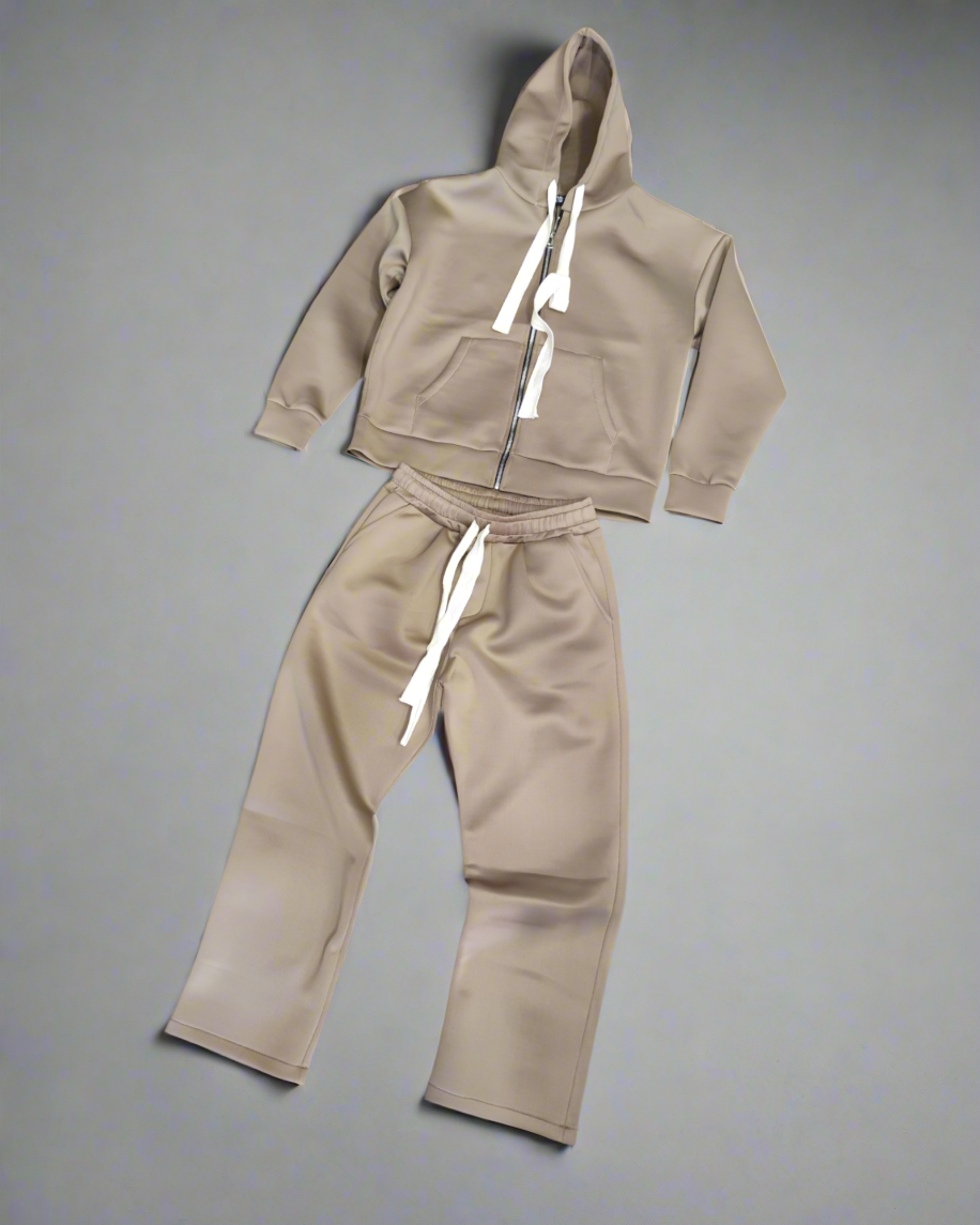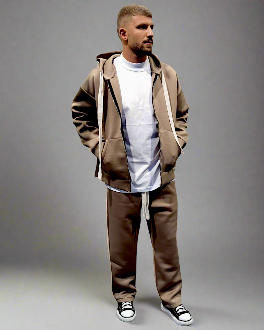 Coordinato completo di Hoodie e pantalone in tessuto scuba effetto lucido